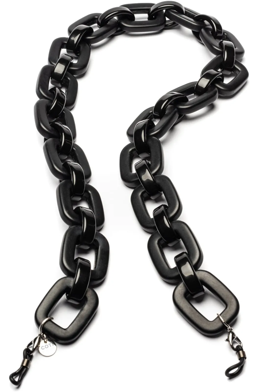 The gorgeous Baci chain is the perfect glasses chain to turn heads, with the stylish rectangular shaped links to showcase classic Italian style to create a fabulously bold and chic look. The sleek black style is perfect for accessorising the simplest of outfits, with a chic, classic statement piece.