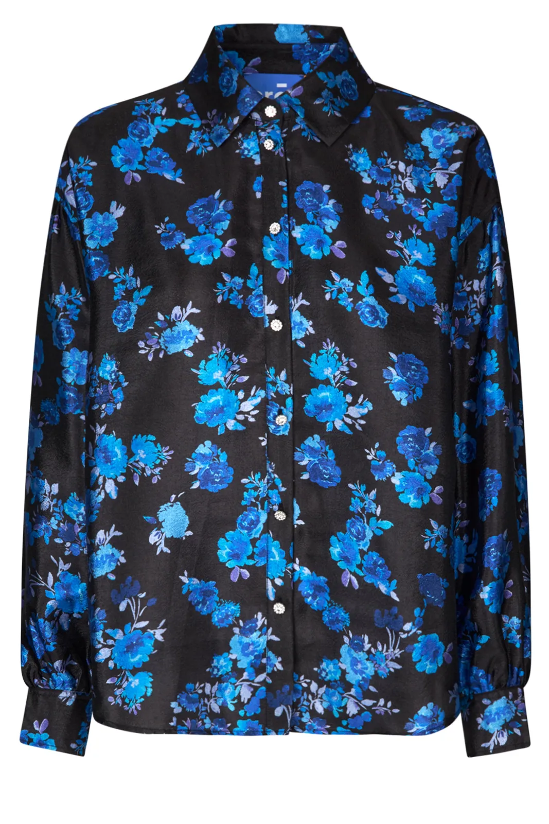Dress to impress with the Ginacras Shirt in Dazzling Blue. Its striking black and blue floral print creates a bold statement, yet its versatile design ensures effortless elegance for any occasion.