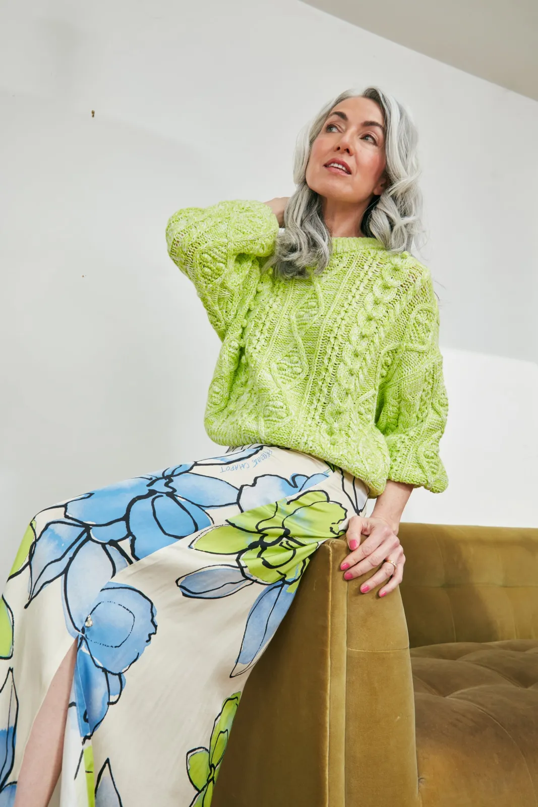 Discover the allure of our Laurie Skirt, a versatile A-line midi skirt with an enchanting hand-painted floral print in blue and yellow hues on an off-white base, a striking but elegant design. The perfect transitional style to take you through the whole of the spring/summer months.