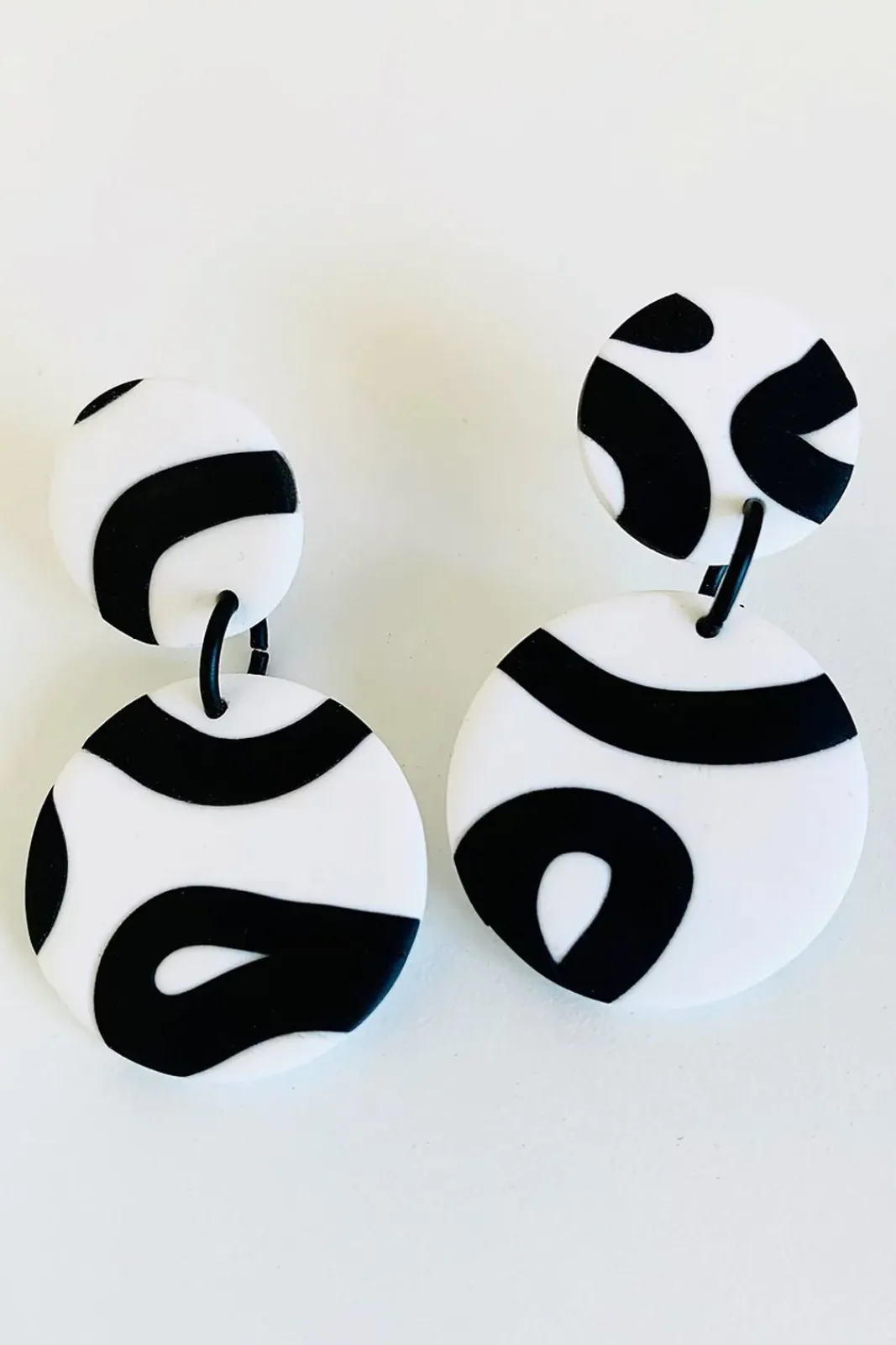Inspired by a true classic, the octopussy design features swirls of interwoven tentacles to create a retro pattern in a white and contrasting black pallet in a medium double dot stud design. Handmade from polymer clay, each piece is truly unique and super lightweight.