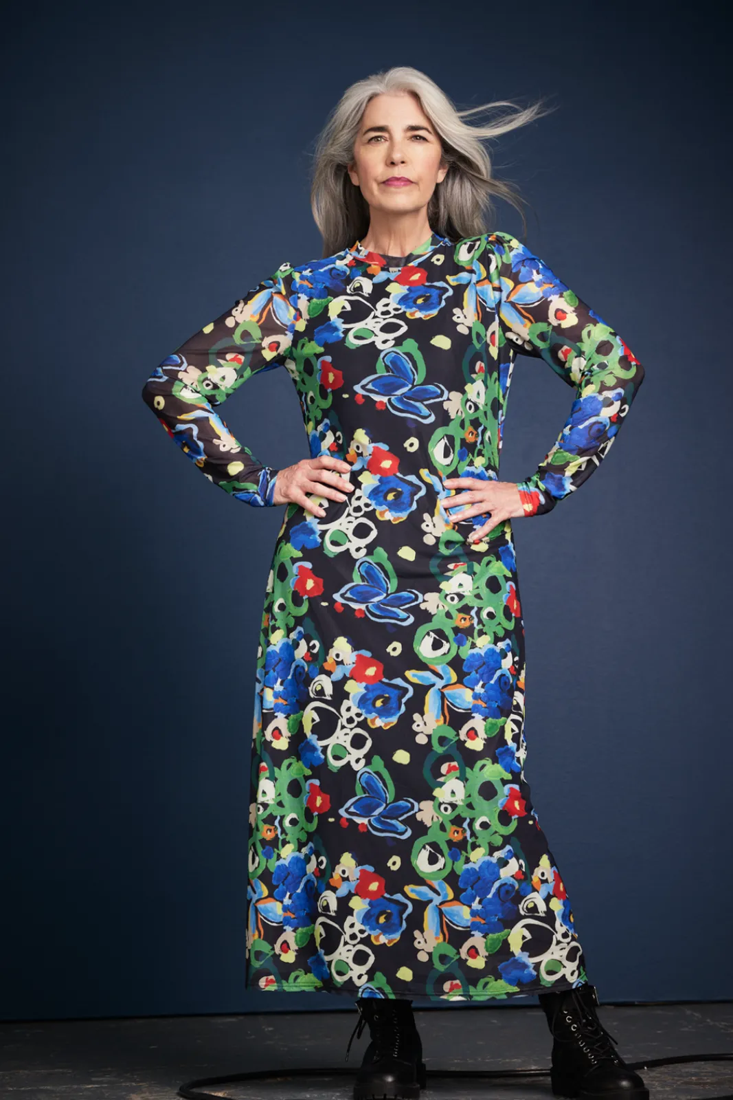 Stand out in style in our Glory Maxi Dress: stunning maxi dress boasting a captivating and vibrant artistic brush floral pattern on a black background.