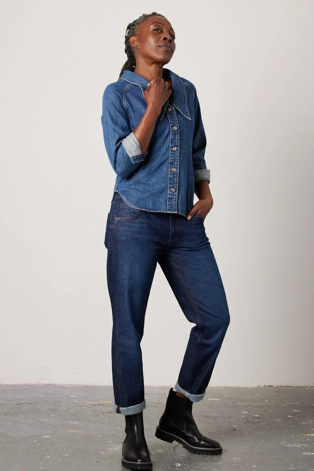 French Brand Reiko introduces the Nina Boyfriend Jean, which is a relaxed fit, straight leg jeans perfect for more casual looks and emulating an androgynous style. Designed for both comfort and style these jeans have a low rise waist and turned up cuffs. The mid blue wash is super versatile, so you are sure to get your wear out of this wardrobe staple.