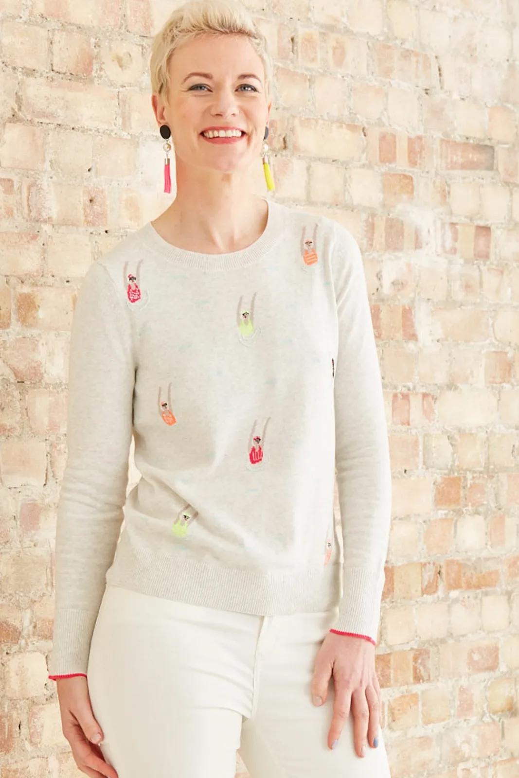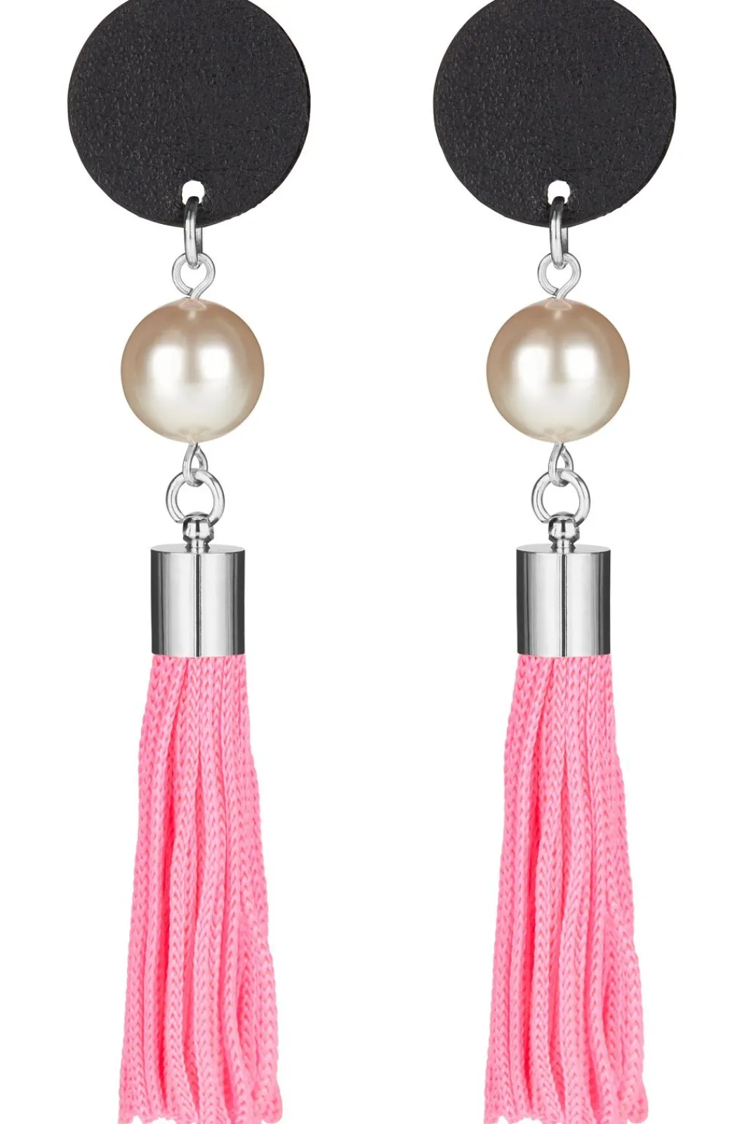 To celebrate the launch of Jacynth London, Jacynth has collaborated with Dark Horse Ornament to design 4 exclusive pairs of earrings, inspired by each of her cashmere designs. A pair of tassel earrings, with double faced black leather dots, glass pearls, and contrasting hand-rolled rayon yellow and pink tassels. Available to purchase as a contrasting pair as intended or as a matching pair.
