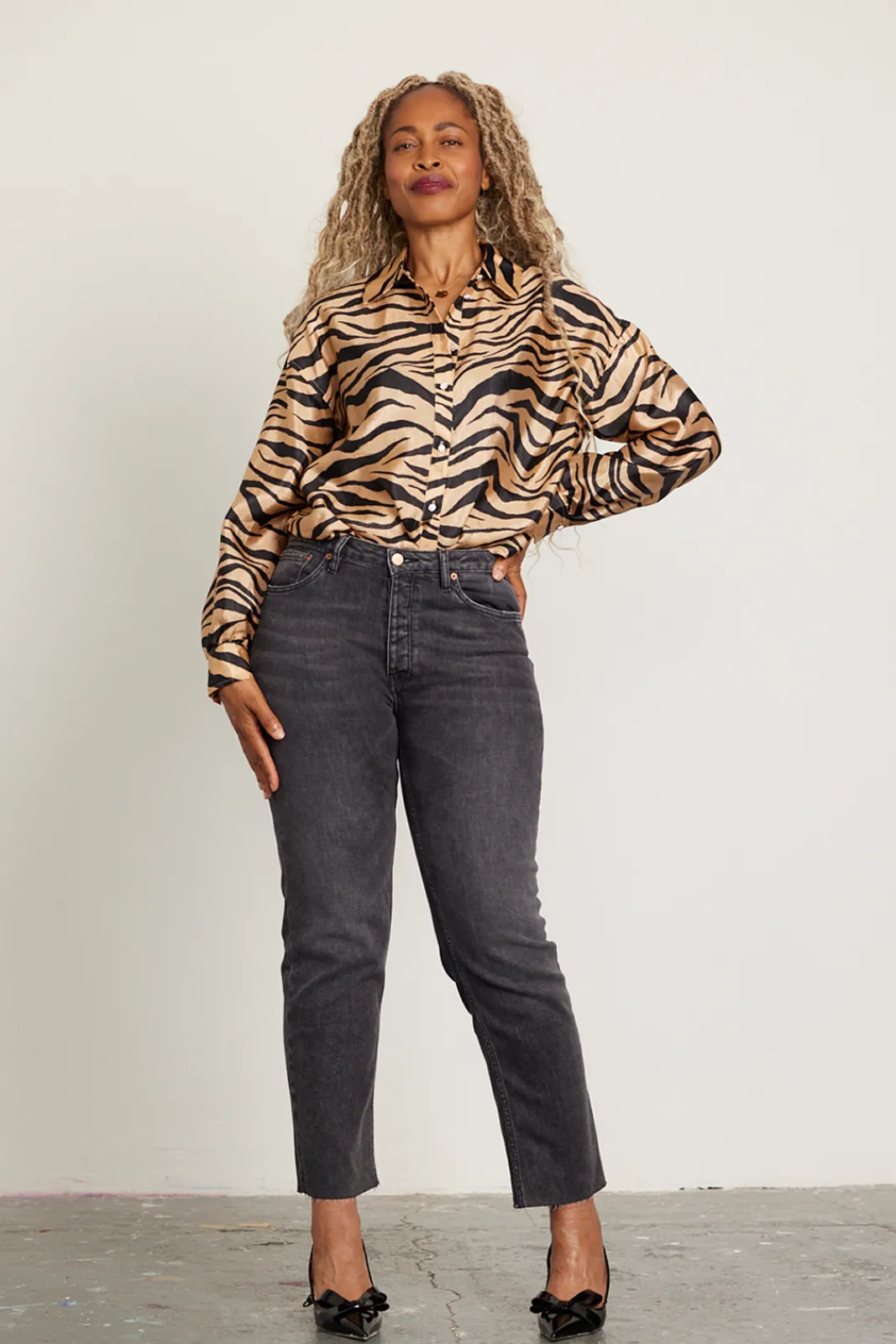 We all know animal print is the ‘new neutral’ and what better way to embrace warm, autumnal vibes with the Ginacras Shirt – Cras’ best-selling, universally flattering relaxed shirt, reimagined here in a ‘Zebra Almond’ print.