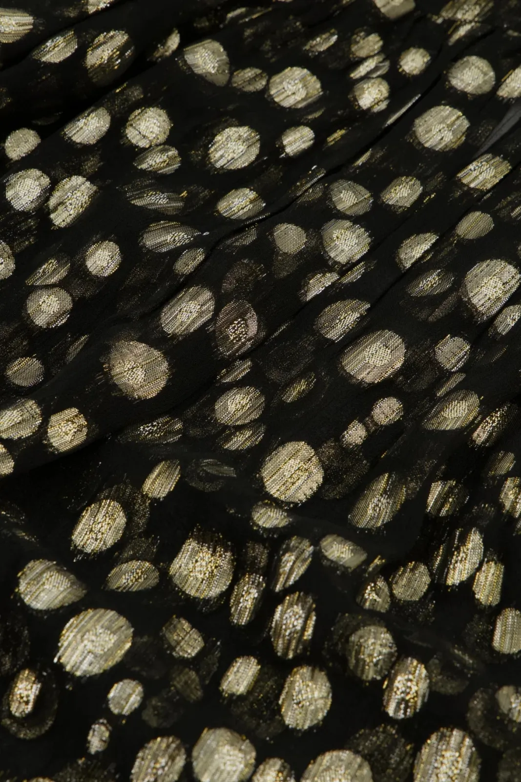 The Didi Top by Fabienne Chapot is an exquisite, flowing blouse that mesmerises with its semi-sheer black base and intricate gold dotty lurex print woven throughout. Ideal for those special occasions, this statement piece is designed to make you shine.