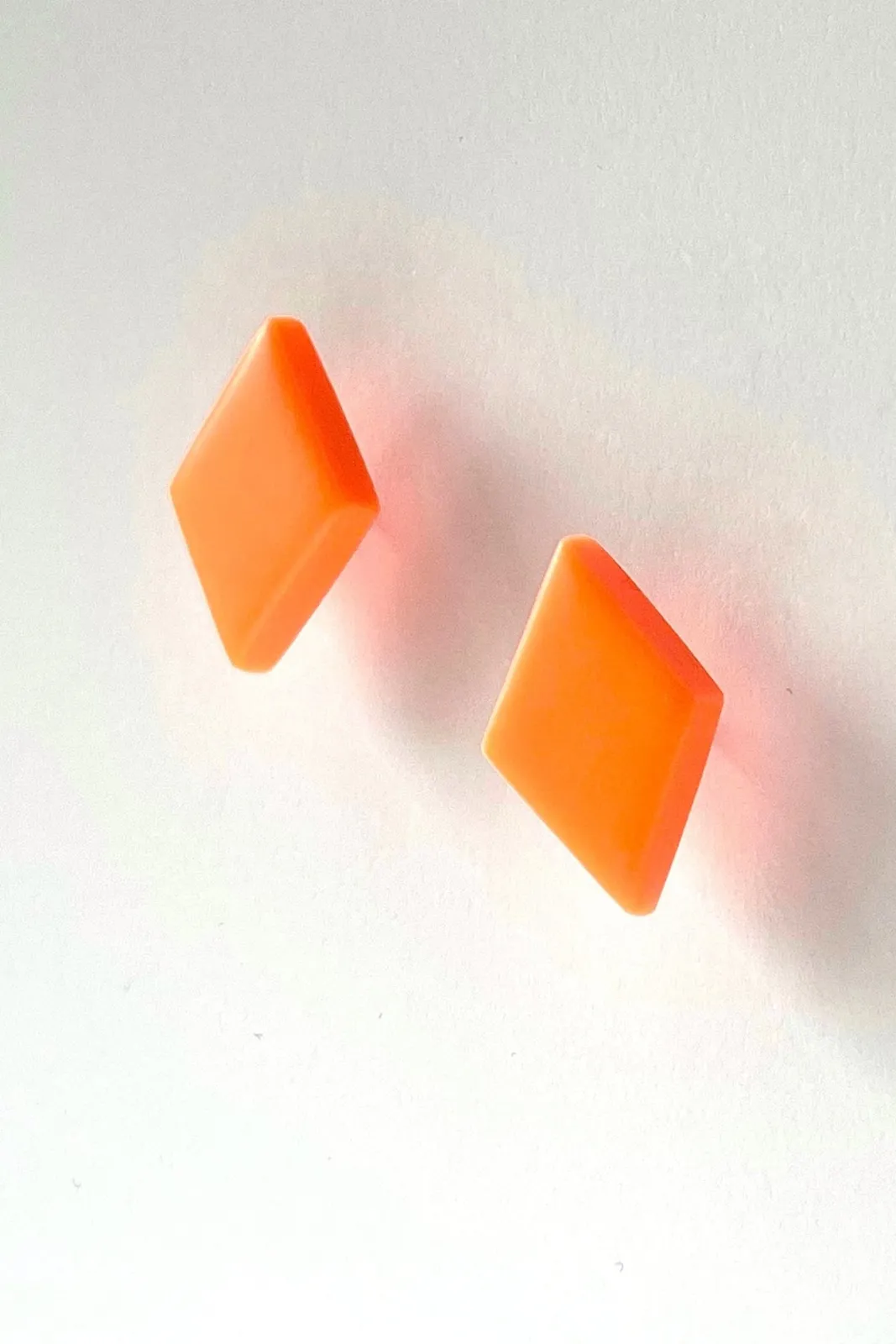 The Gaia earrings are a super cool and versatile statement stud that can be worn and styled a multitude of ways. The super lightweight and edgy chain drops are finished perfectly with sparkling glass beads, which can be detached from the bold orange polymer clay stud and reattached with ease, by looping the chain over the titanium stud post, so that you can have both comfort and style.
