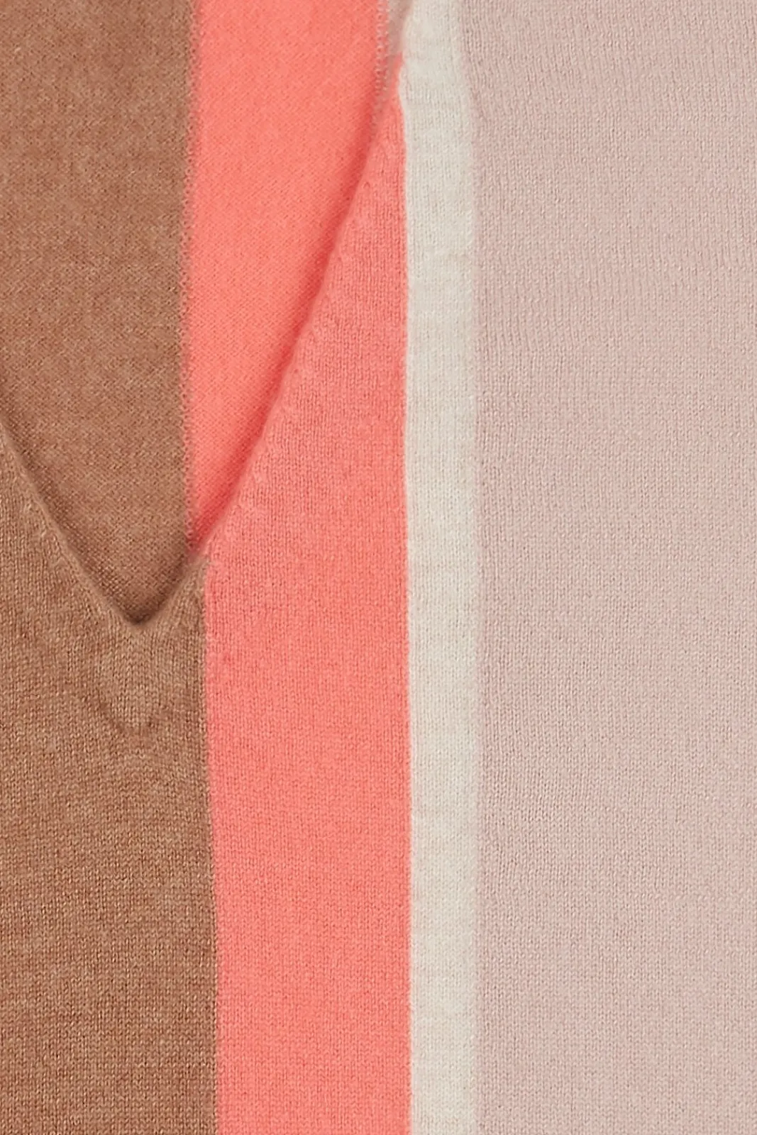 The Athena is modern classic, contrasting sumptuous neutral coffee shades with a bold pop of orange. It features a V-Neck line, a batwing shape, and side slits for a flattering silhouette, whilst the 3-4 quarter length sleeves means it can be worn all year round, either layered or by itself. Easily dressed up with gold heels and tailored trousers, or down with jeans and white sneakers, it boasts instant wardrobe hero status. And it’s just as well: crafted from butter soft highest quality cashmere, you’ll never want to take it off.