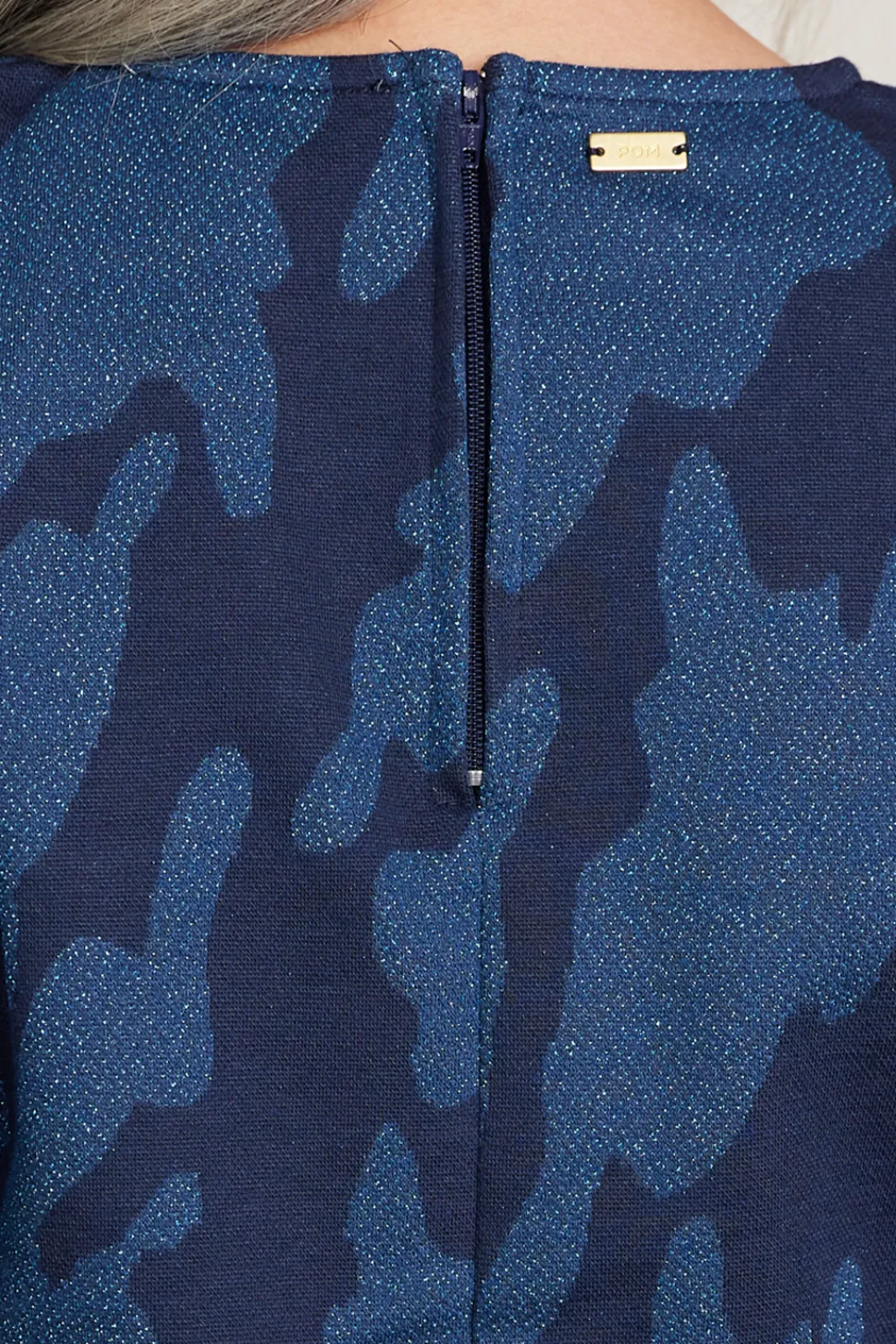 Our model, Shayne, is wearing the POM Amsterdam Swirl Horizon Blue Top with the .