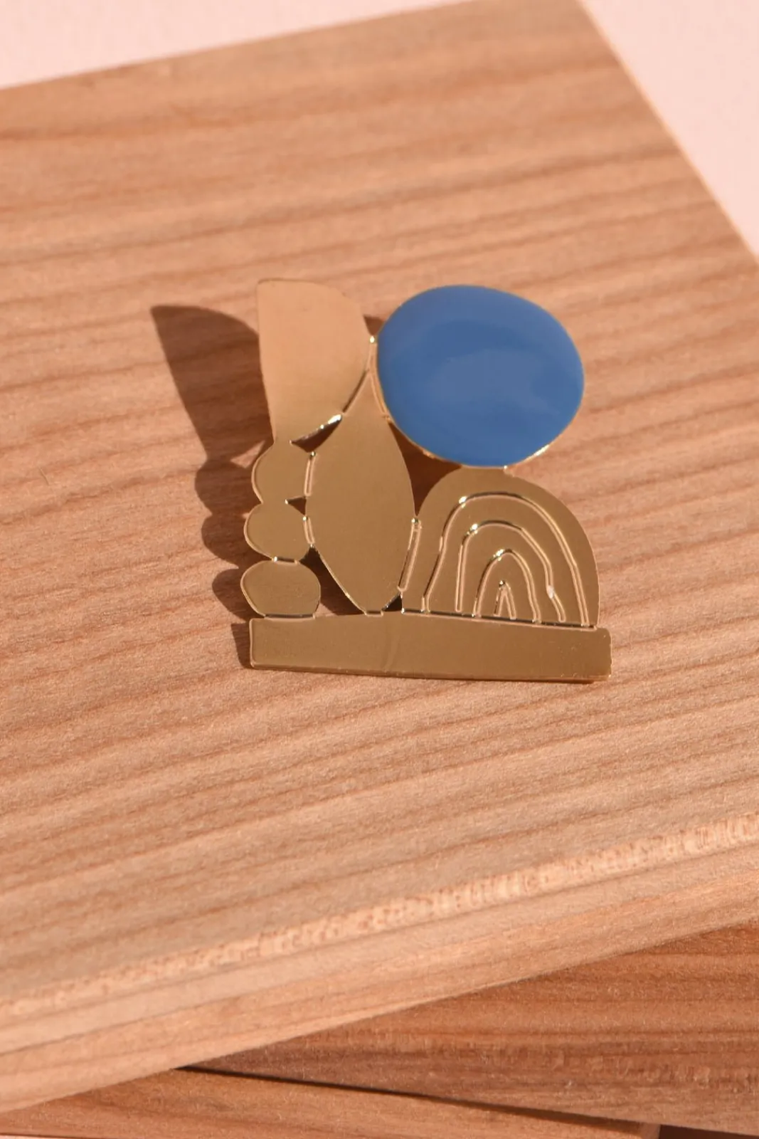 The Abstract Brooch is part of an amazing collaboration between English Designer Donna Wilson and Titlee, showcasing how the world of abstract design style and dainty pins can come together beautifully. Made from 24k gold gilt brass with gorgeous blue resin, engraved to add beautiful detail.